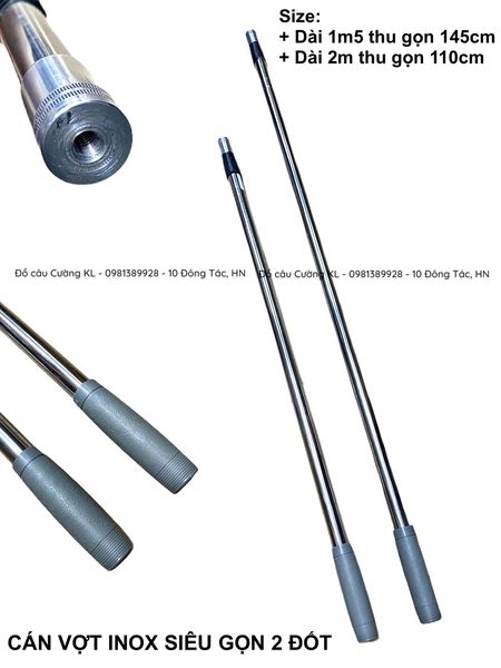 Cán vợt Inox CC 2 đốt NGẮN (Dài 1m5-Thu 82cm)