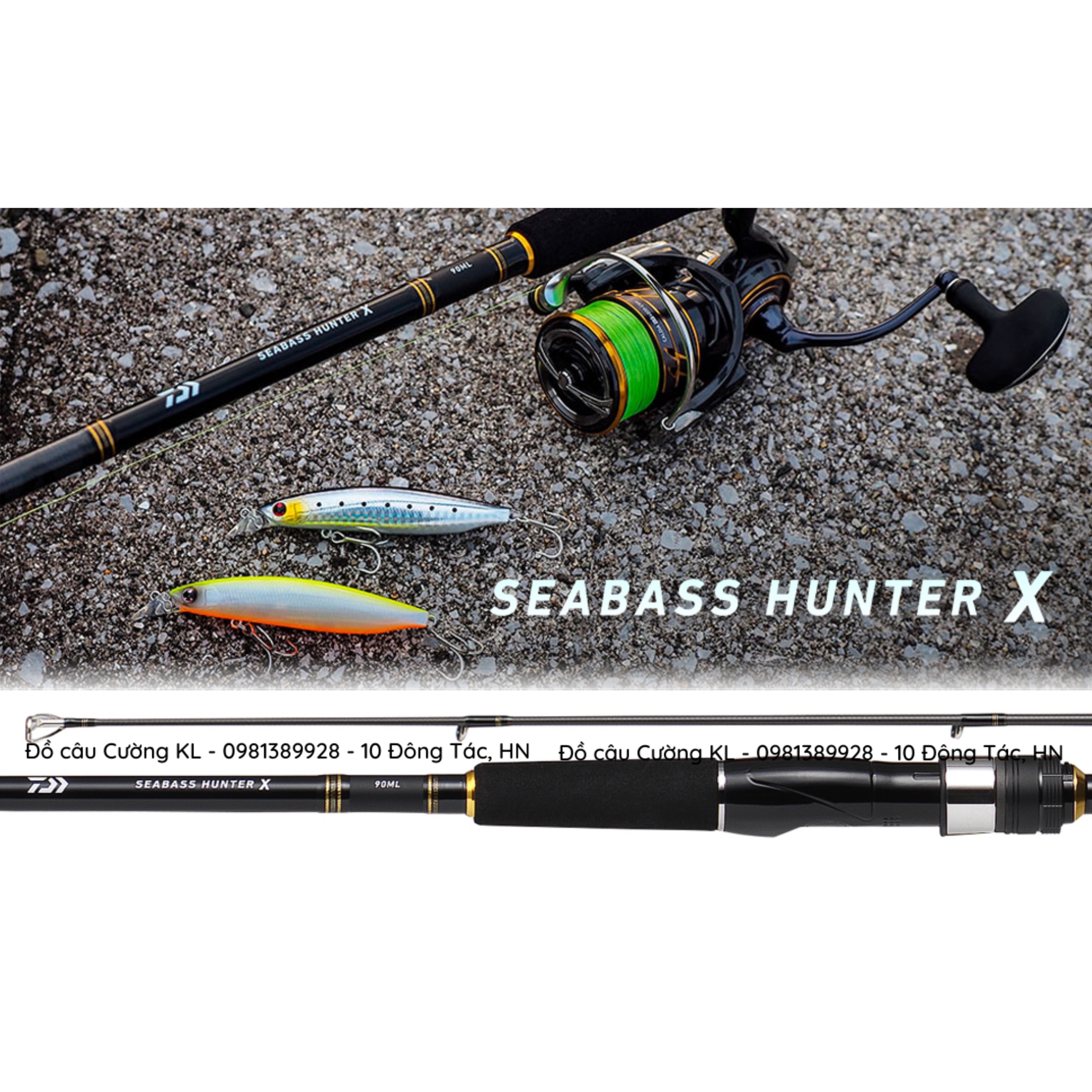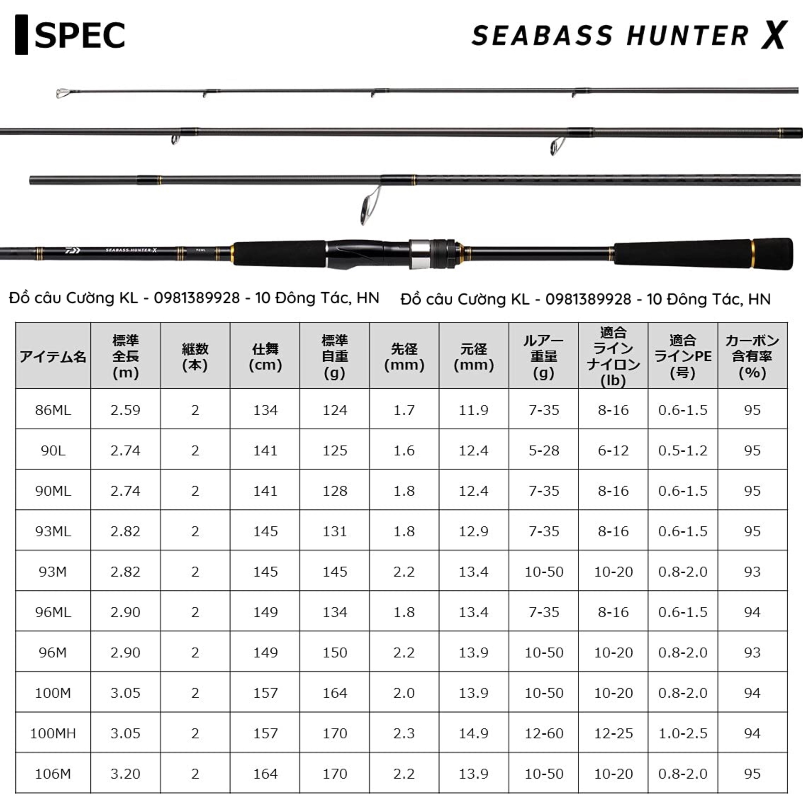Cần Lure Daiwa SeaBass Hunter X | 2 Khúc là cây cần lure ghềnh, biển, ném xa bờ và kết hợp cả câu lục. Blank cần sử dụng công nghệ carbon mật độ cao HVF và mô hình quấn Branding X tăng cường khả năng chống ép xung, giảm trọng lượng. Khoen cần Fuji Arconite hạn chế tối đa việc xoắn dây Nylon và việc khoen bị cắt khi sử dụng dây dù. Đoạn kết nối giữa 2 khúc được thiết kế cắm ngược, tạo độ cong cho cây cần. Thiết kế này nhằm triệt tiêu sức mạnh và khống chế những con cá hung dữ nhất.