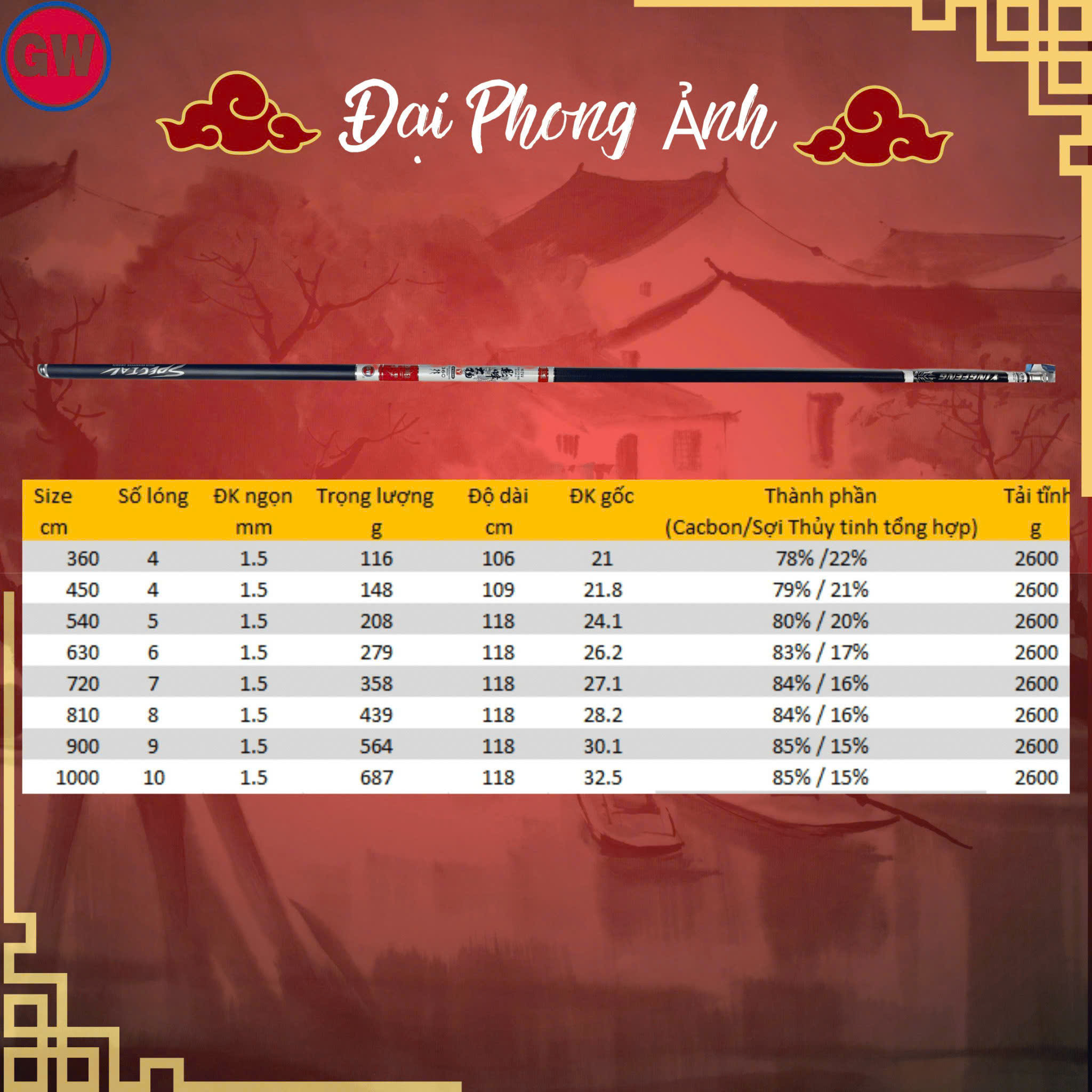 - Cần chính hãng siêu nhẹ, bền, khoẻ của GW