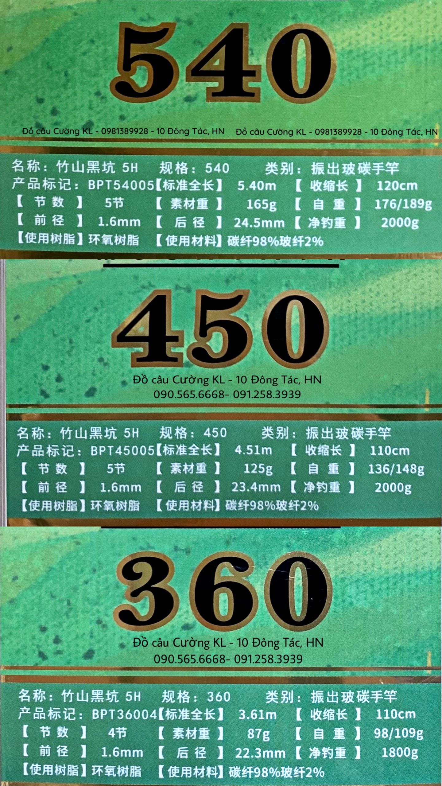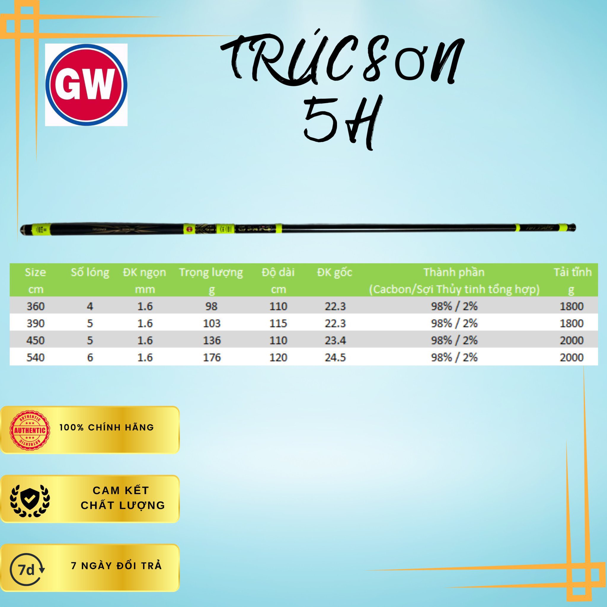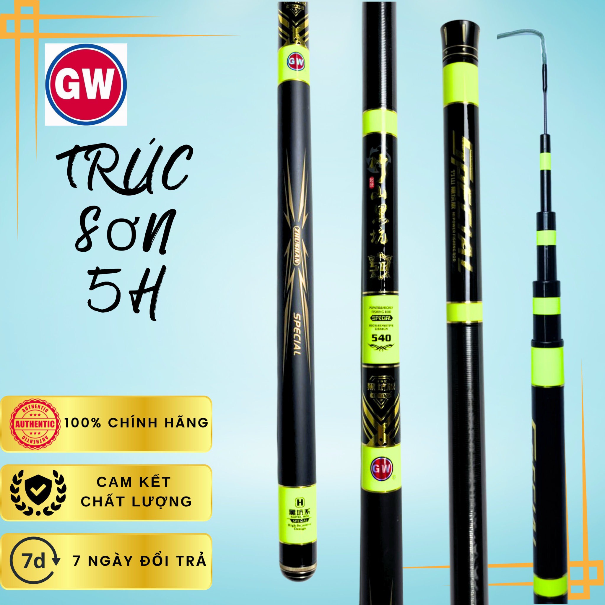 Cần tay dài GW Trúc Sơn Heikeng 5H đen xanh