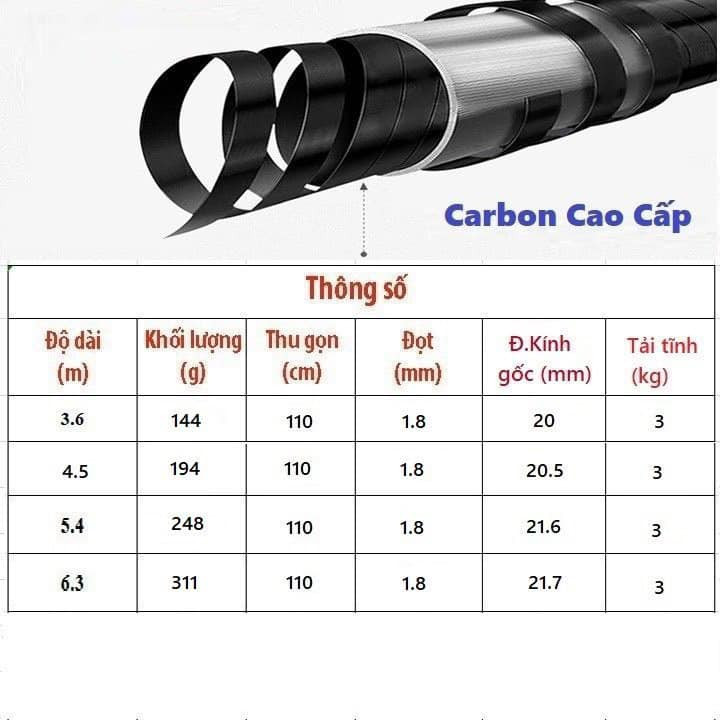 - Độ dài: 3.6m - 5.4m - 6.3m