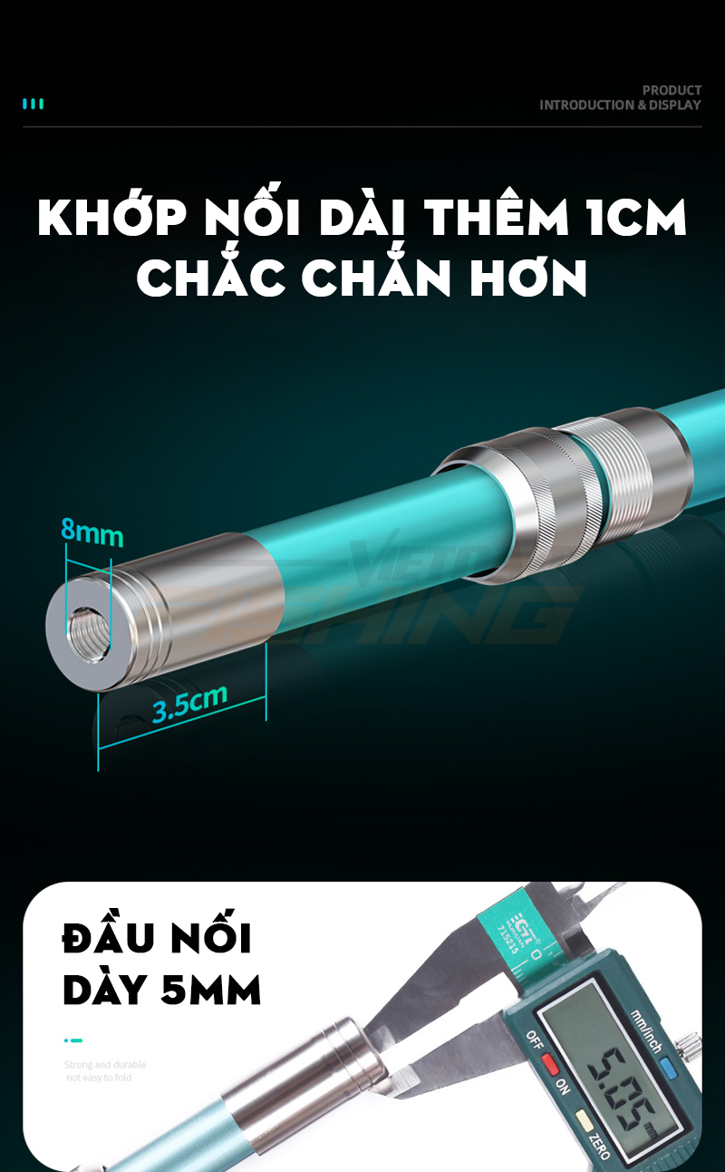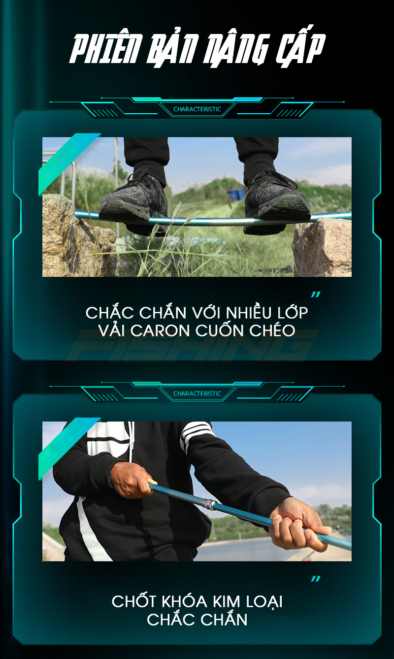 Với thiết kế tươi mới, khung thân chắc chắn cán vợt Carbon Handing là một sản phẩm cực kì đáng tiền trong tầm giá. Phiên bản này có cực nhiều cải tiến về trọng lượng và khớp nối khi bây giờ khớp nối đã được làm dài thêm 1cm tạo độ chắc chắn kết hợp cùng các chốt khóa linh hoạt, tiện lợi.