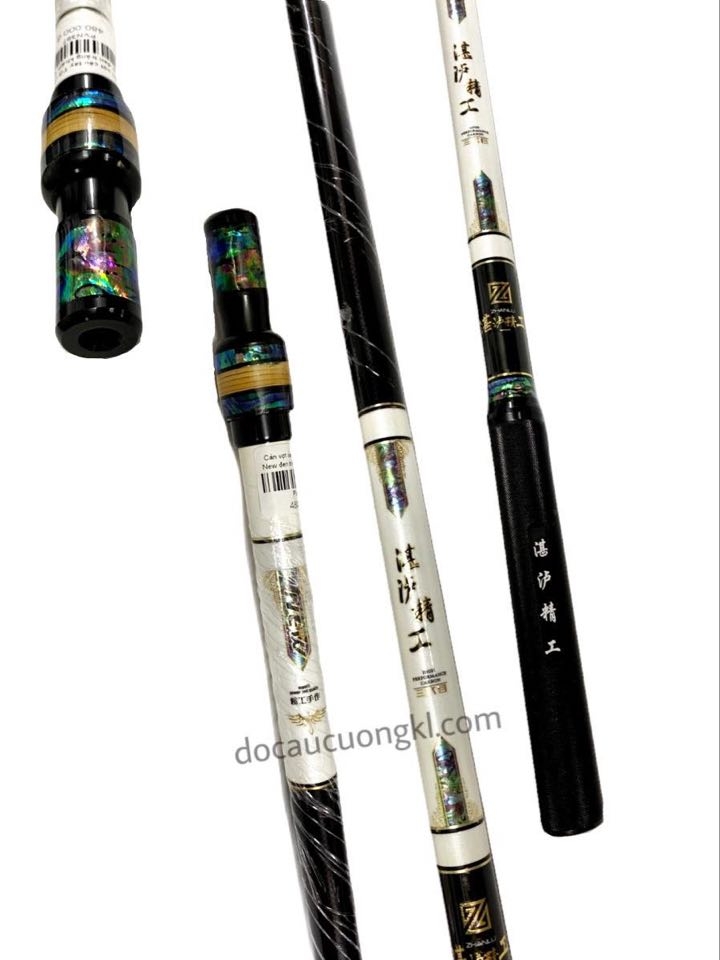 Cán vợt câu tay TG carbon New đen trắng khảm trai 2m