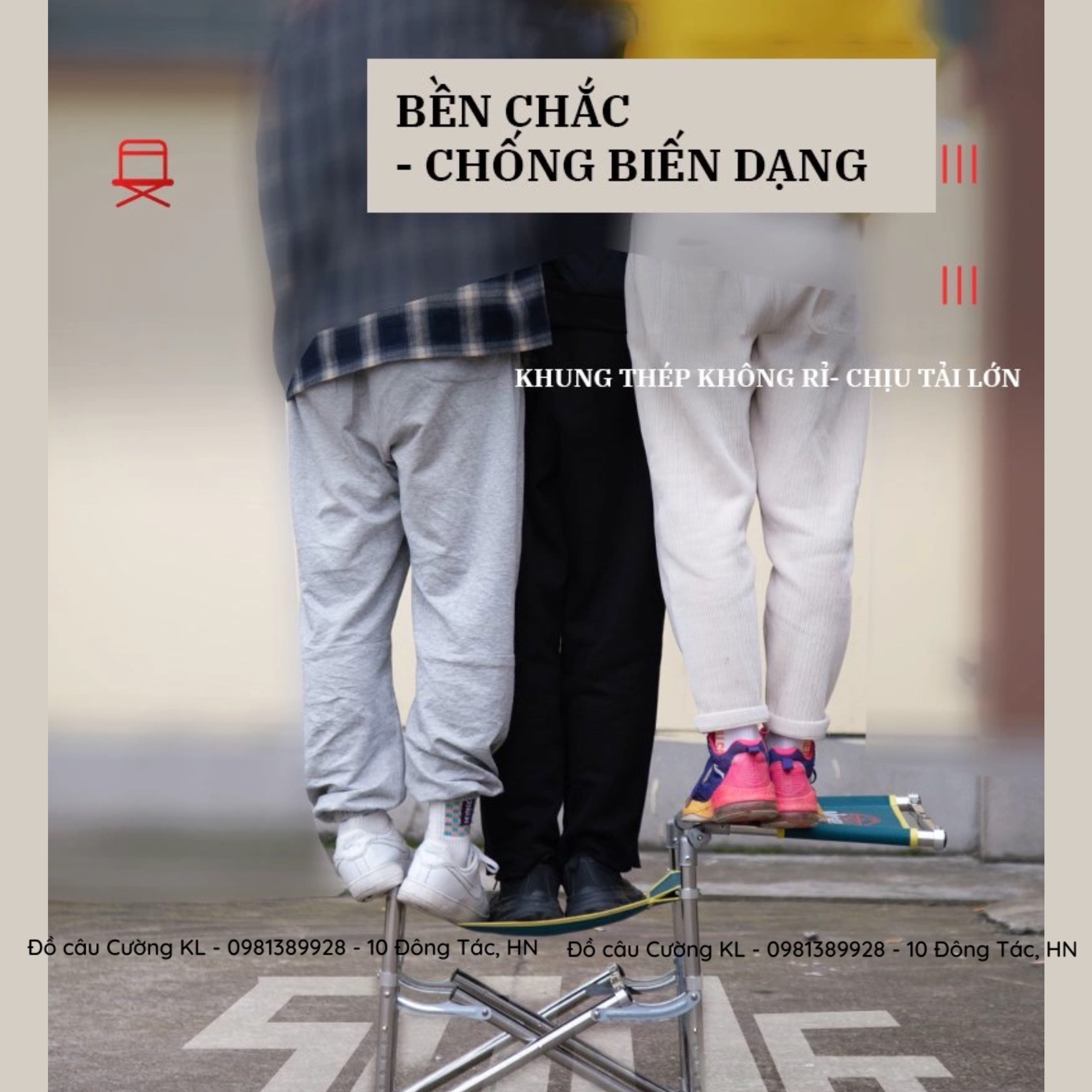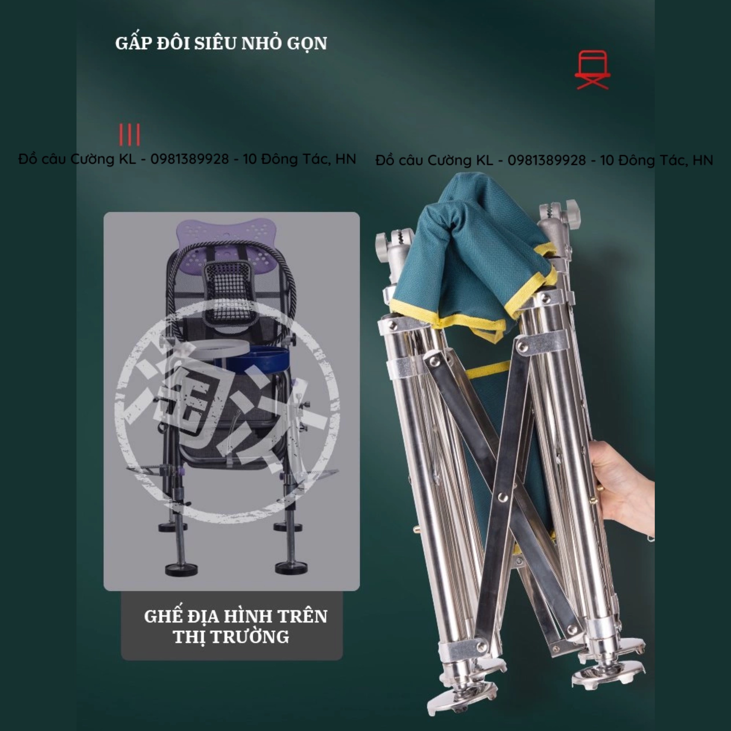 - Ghế có thể dễ dàng gập gọn để cho vào túi xách đi kèm
