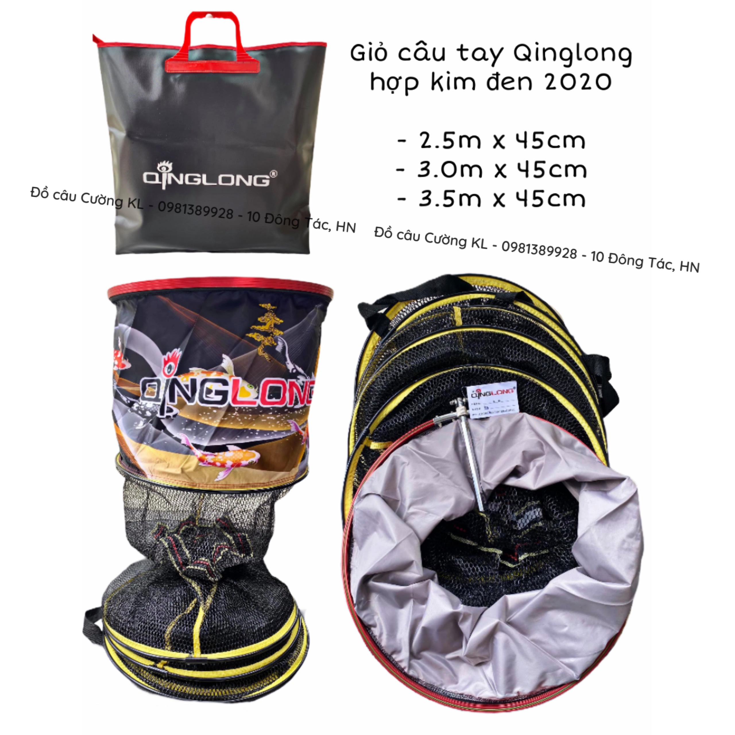 Giỏ câu tay Qinglong hợp kim đen