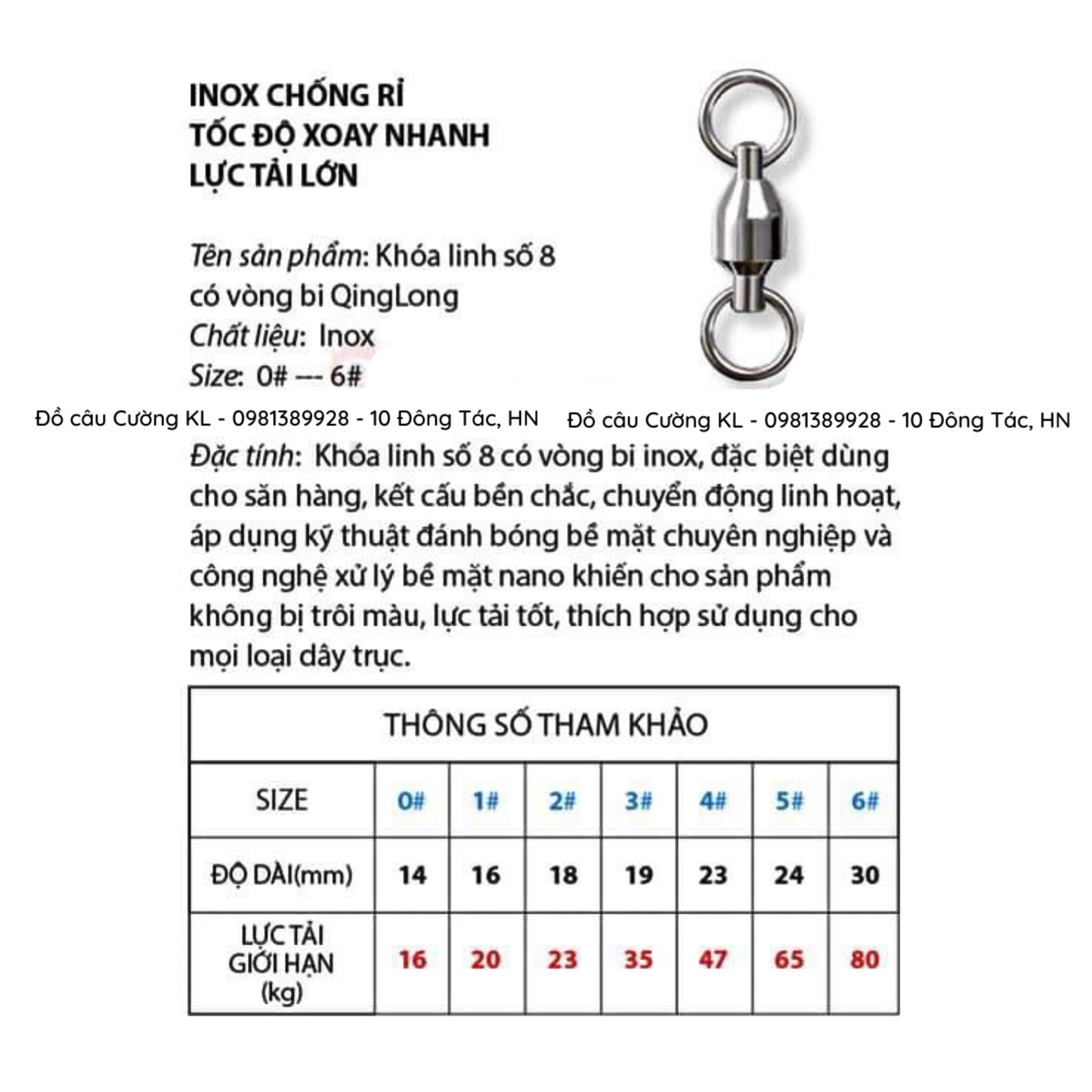 - Size #0 : Độ dài 14mm - Tải 16kg