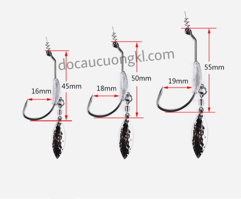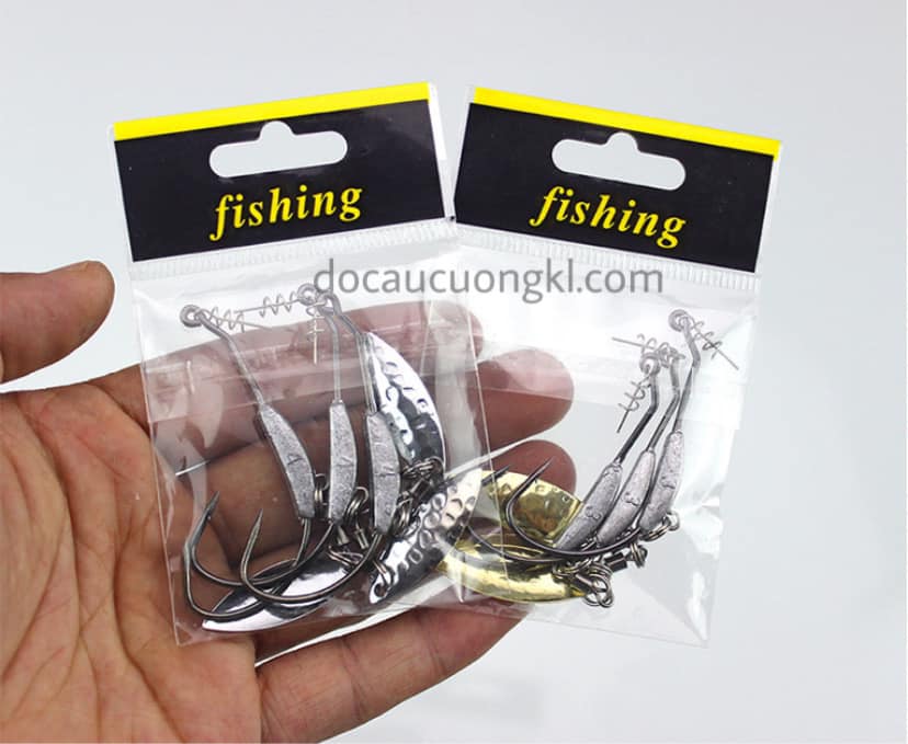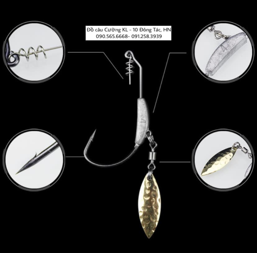 Lưỡi móc mồi mềm xoắn lò xo có gắn sẵn thìa xoay ( màu bạc hoặc vàng) là sự lựa chọn số 1 cho những bác cần thủ thích câu lure cá lóc bằng mồi mềm