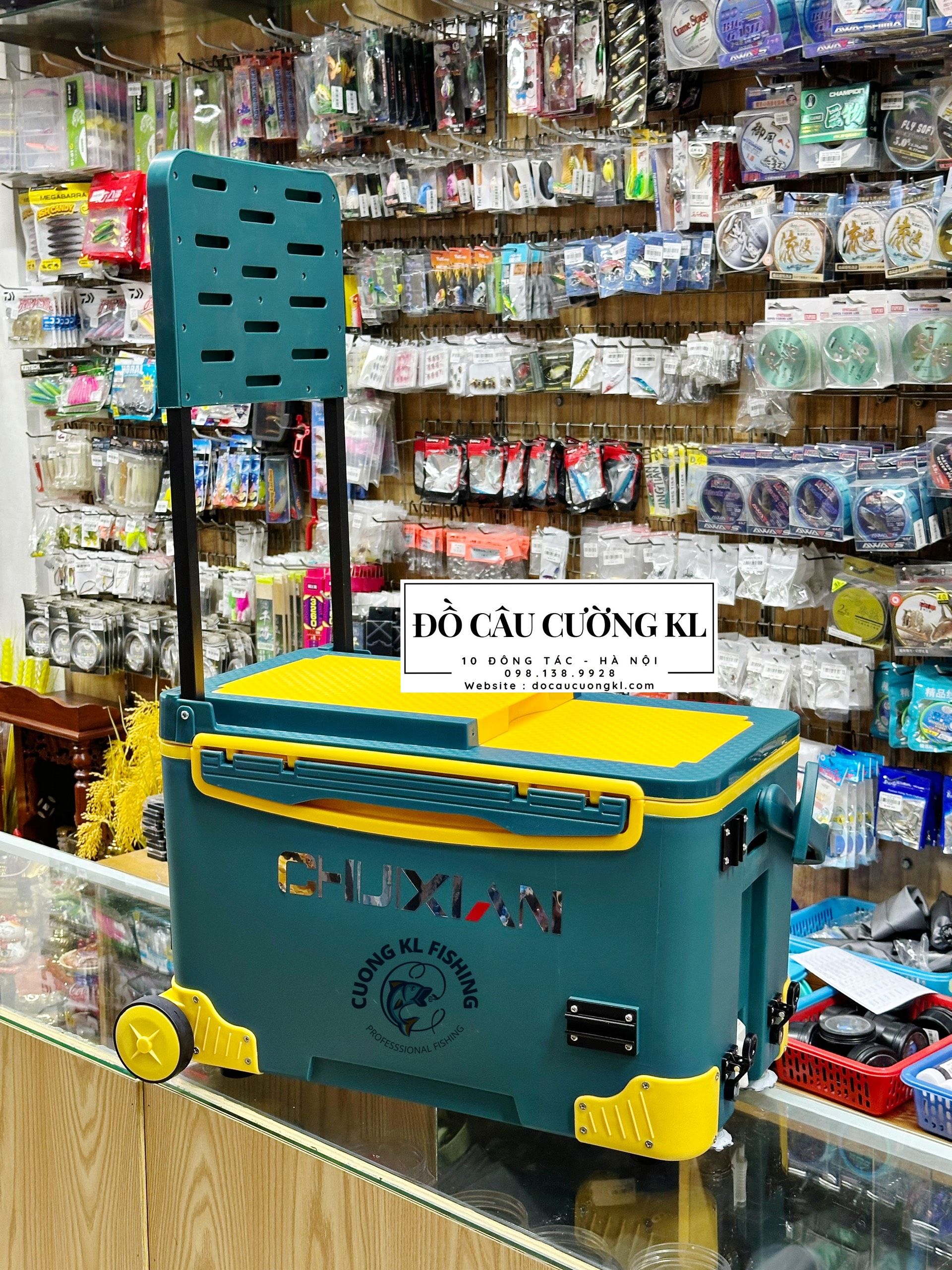 - Đặc Biệt : Thùng có tựa lưng gập ẩn - và trên mặt có nhiều ngăn đệ phụ kiện câu đơn đài. Có bánh xe di chuyển tiện lợi.