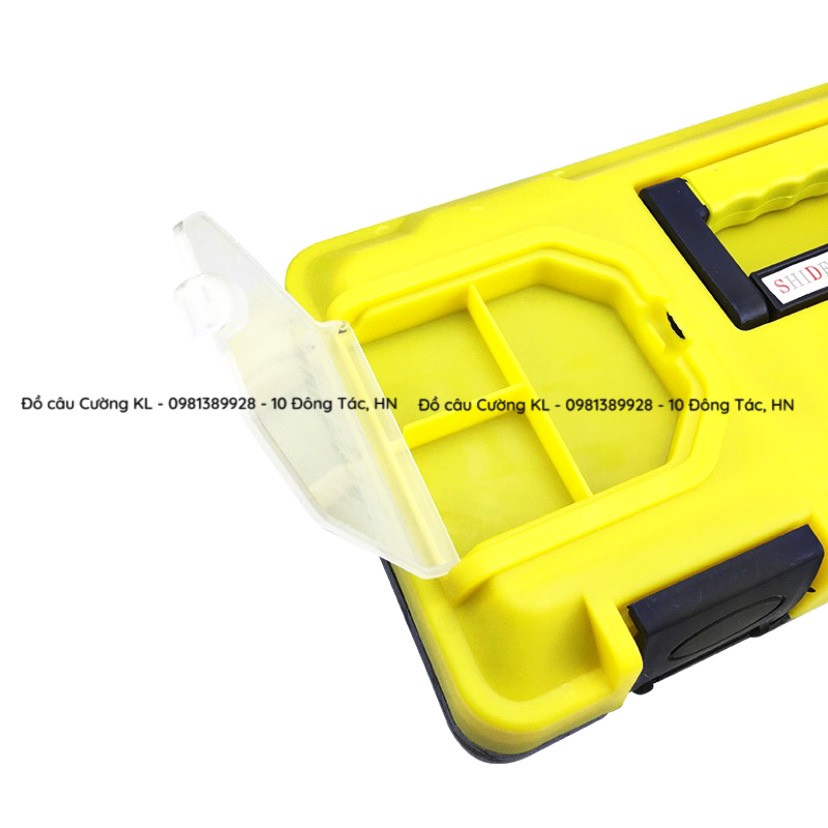 - Khóa nhựa trên thân thùng giúp các phụ kiện câu cá bên trong thùng không bị rơi ra ngoài khi di chuyển, chỉ bằng 1 cái ấn nhẹ là có thể đóng hay mở nắp thùng rất dễ dàng.